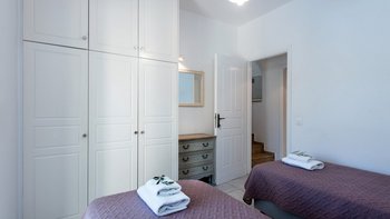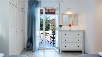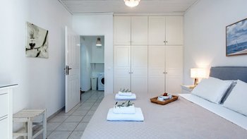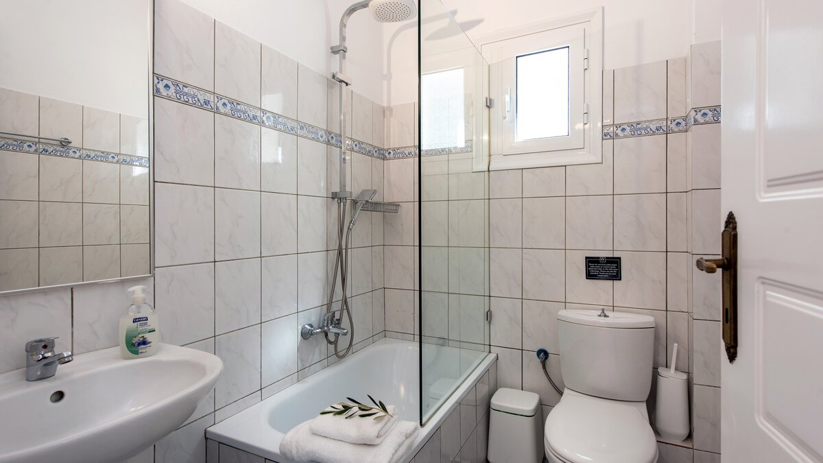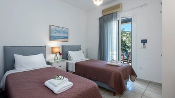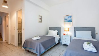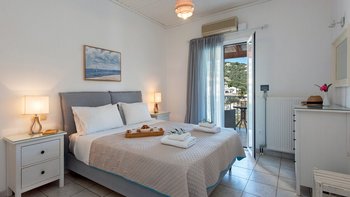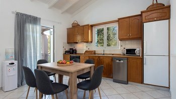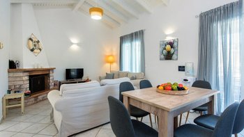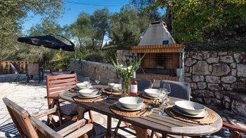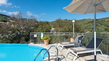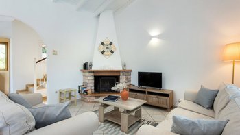 In der Nähe des Wassers auf der niedrigen Landzunge, die die Hufeisenbucht von St. Stephano bildet, teilt sich dieses attraktive Haus das Vorgebirge mit seinen beiden Schwestervillen Fotoula und Stephanos. Denen drei sind sehr privat und völlig unabhängig voneinander, obwohl zwei (oder alle) zusammen für große Gruppen oder große Familientreffen gebucht werden könnten. „Eftihia“ bedeutet übersetzt „gutes Glück“, und diese Familienvilla befindet sich sicherlich in einem glücklichen Ort, nur 100 Meter vom Hafen mit seinen vielen gemütlichen Tavernen und fünf Minuten zu Fuß vom künstlich angelegten Strand des Dorfes entfernt.Der Villa auf Split Ebene verfügt über ein offenes Wohn-/Esszimmer und eine Küche, die leicht über dem Pool angehoben wird und auf eine schattige Veranda führt, auf der man im Freien speisen kann. Es gibt zwei Zweibett-Schlafzimmer und zwei Duschräume auf der unteren Poolseite. Deren Haupt-Doppelzimmer befindet sich auf der obersten Etage und verfügt über ein eigenes Bad und einen eigenen Balkon, von dem aus Sie die Aussicht genießen können. Der acht Meter lange Infinity-Pool verfügt über Liegen auf seiner gepflasterten Umrandung und direkt darüber befindet sich ein geräumiger Grillplatz mit Schattenspendenden Bäumen.