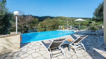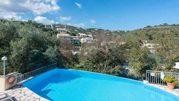 Ein sehr hübsches Haus mit einem privaten Infinity-Pool, diese Familienvilla auf Korfu ist perfekt für dörfliche Einrichtungen positioniert, nur wenige Schritte von der Uferpromenade des malerischen St. Stephano entfernt.