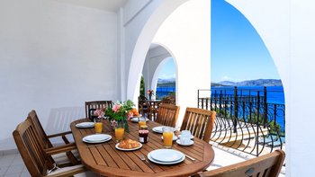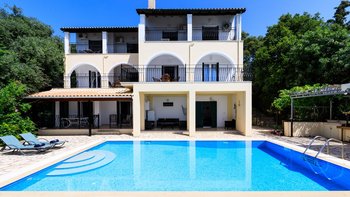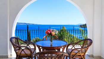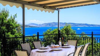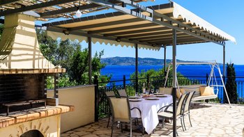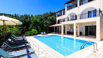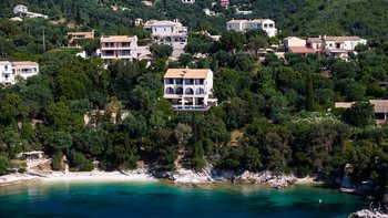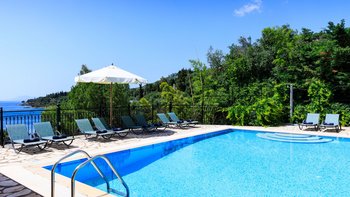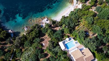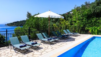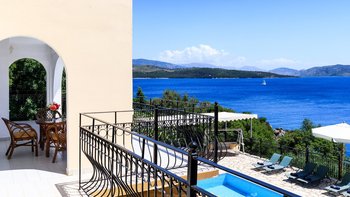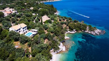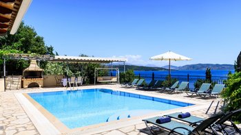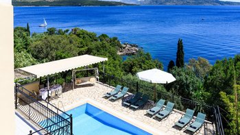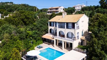 An einem absolut idyllischen Ort an der Nordostküste der Insel liegt diese Familienvilla auf Korfu direkt über einer verschlafenen Bucht und bietet von der Poolterrasse und den Balkonen eine außergewöhnliche Aussicht.