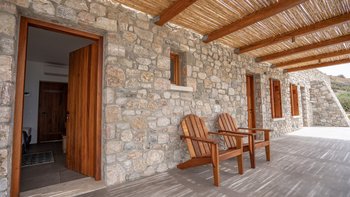 Der Außenbereich ist ein wahres Paradies, das sich nahtlos in die natürliche Schönheit Kretas einfügt. Nur wenige Schritte von der Villa entfernt, können die Gäste ihre Zehen in den weichen Sand des Privatstrandes eintauchen und das kristallklare Wasser des Libyschen Meeres genießen. Denen umliegenden Sanddünen, die mit zarten Sandlilien geschmückt sind, die im August blühen, schaffen eine einzigartige und geschützte Umgebung. Mehrere Terrassen und Sitzbereiche im Freien und bieten perfekte Orte, um im Freien zu speisen, sich zu sonnen oder einfach nur die faszinierende Aussicht zu genießen. Naturliebhaber werden begeistert sein zu wissen, dass der Strand ein Nistplatz für die Meeresschildkröte Caretta Caretta ist, die hier jeden Juni ihre Eier legt und dem Erlebnis der Villa ein Element des ökologischen Wunders verleiht.