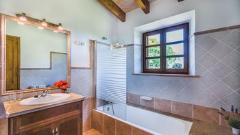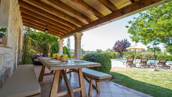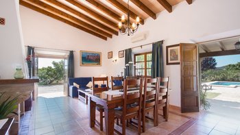 In abgeschiedener, ländlicher Lage und dennoch nur 3 km von Pollensa und 6 km von Puerto Pollensa entfernt, ist diese sehr beliebte Villa eine gute Wahl für einen Familienurlaub. In einem 6000 m² großen Garten gelegen, ist die Villa großzügig geschnitten und durchdacht ausgestattet, drinnen und draußen, und fördert das Leben im Freien mit einem eingebauten Grillplatz und großen schattigen, mit Weinreben bedeckten Terrassen, die zum Essen und Entspannen eingerichtet sind. Im Inneren gibt es ein luftiges Wohnzimmer mit hoher Decke mit Essbereich und Zugang zu den Terrassen, eine separate moderne Küche mit Frühstücksbereich und einen Hauswirtschaftsraum. Von einem Ende des Esszimmers gelangt man in das hübsche, geräumige, helle Hauptschlafzimmer mit eigenem Bad. Ein Flur vom Essbereich führt zu zwei weiteren Zweibettzimmern mit aufwendigen Kunstwerken, eines mit eigenem Bad und eines mit angrenzendem Badezimmer. Der Pool liegt zwischen großen Sonnenterrassen und es gibt weitläufige Rasengärten auf der Rückseite des Hauses. Frühzeitige Buchung ist erforderlich.
