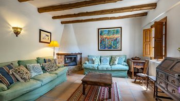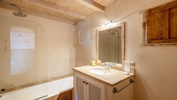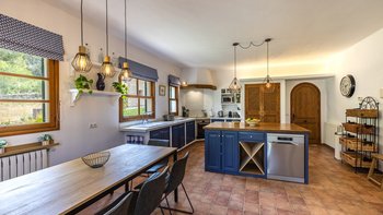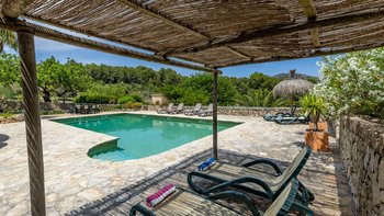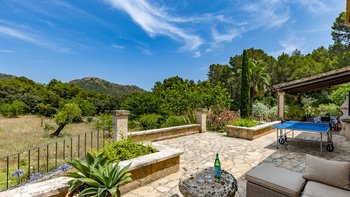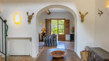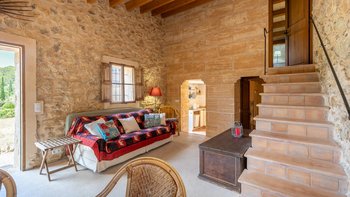 Eingebettet in die Hügel hinter den Buchten von Alcudia und Pollensa, mit ruhigem Blick auf das Tramuntana-Gebirge, ist Ca’n Isabella eine liebevoll restaurierte mallorquinische Finca auf einem kleinen Privatgrundstück von ca. 20 Hektar, wo geräumige und aufgeräumte Zimmer im komfortablen Landhausstil eingerichtet sind. Ein großes Wohn-/Esszimmer mit vielen Fenstern und einem Holzofen, dem Herzstück des Hauses, wird durch ein Arbeitszimmer ergänzt, das auch als Spielzimmer dienen kann. Es öffnet sich auf eine schattige Veranda und einen weichen Sitzbereich mit Blick auf die Gärten und einem herrlichen Blick auf das Tal. Von hier aus führt eine Treppe hinunter zu einem großen 12-Meter-Pool, der von niedrigen Steinmauern umgeben ist und mit einer möblierten Pergola auf der gepflasterten Poolterrasse ausgestattet ist. Vielleicht gönnen Sie sich ein kurzes Training in der Sonne, dank der neu eingerichteten Fitnessgeräte mit Hanteln, Glocken und Yoga-Matten, die ideal sind, um sich im Urlaub fit zu halten.