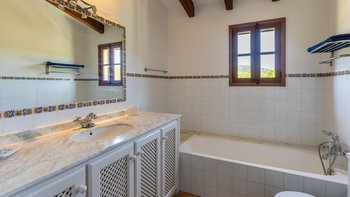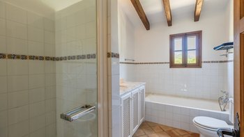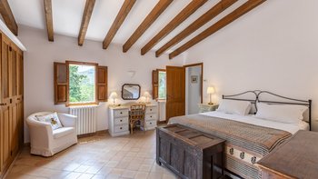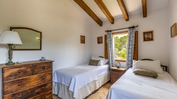 Im Obergeschoss sind die vier Schlafzimmer im sehr attraktiven Landhausstil mit typisch mallorquinischen Stoffen eingerichtet. Clever angelegte Gartenanlagen, die in sommerlichen Farben erstrahlen, tragen zur ländlichen Entspannung bei, und der Kochservice könnte einen spürbaren Beitrag zu entspannten Tagen leisten. Um das Tempo zu erhöhen, ist Alcudia nur 5 km von der Villa entfernt, mit einem beliebten Strand, Geschäften, Restaurants und einem römischen Theater. Deren charmante Stadt Pollensa mit einer großen Auswahl an Restaurants und guten Einkaufsmöglichkeiten ist nur 8 km entfernt, und der 18-Loch-Golfplatz Alcanada ist einer von mehreren guten Golfplätzen in der Nähe.
