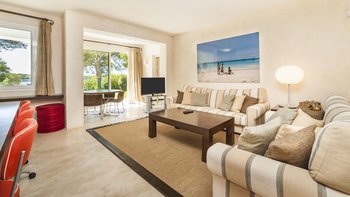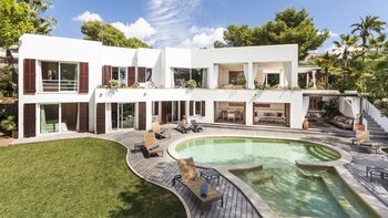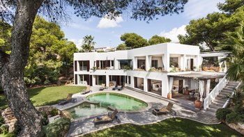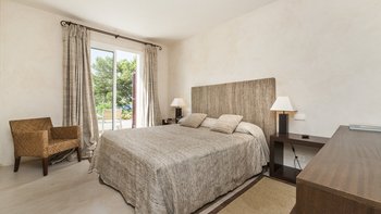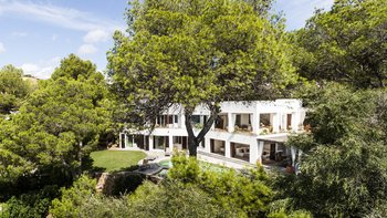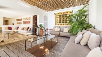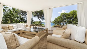 Mit Blick auf eine geschützte Bucht an der Südostküste der Insel, liegt Ca’n Mondrago inmitten von Rasengärten, die von viel Grünem abgeschirmt und durch den Schatten der Bäume gekühlt werden. Mit klimatisierten Innenräumen, wunderschön eingerichteten „Räumen“ im Freien und viel Platz in beiden verwischt die sehr schicke Villa die Grenzen von Innen- und Außenkomfort. Auf der oberen (Eingangs-)Ebene öffnet sich eine gut ausgestattete Küche zum Grundstück, wo es eine Palmengarten-Ess-/Sundowner-Terrasse gibt. Ein offen geschnittenes Wohn- / Esszimmer hat Türen zu einem überdachten Sitz- und Essbereich mit freiem Meerblick; und es gibt ein Hauptschlafzimmer und ein Zweibettschlafzimmer. All dies spiegelt sich im unteren Erdgeschoss wider, mit einem geräumigen Fernsehraum und zwei Zweibettzimmern, die sich jeweils zum Pool hin öffnen, einem weiteren Zweibettzimmer an der Seite des Hauses, einer Innenküche und einem Wechsel- und sowie einem und Chill-out-Bereich im Freien mit tief gepolsterten Sitzgelegenheiten.