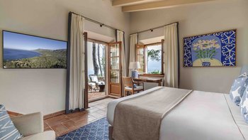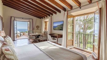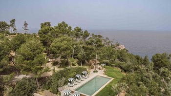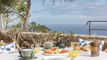 Mit ausgedehnten Rasenflächen unter hohen Bäumen und ununterbrochenem Blick auf das Blaue der Bucht, ist Sa Punta in Konzept und Design atemberaubend. Dessen Haus liegt auf einem prestigeträchtigen Anwesen an der Nordwestküste Mallorcas und ist ruhig privat, obwohl das Dorf Banyalbufar nur eine kurze Autofahrt entfernt ist und die malerischen Dörfer Palma, Deiá und Sóller leicht zu erreichen sind. Ein malerischer Kieselstrand ist etwa 20 Minuten zu Fuß von der Villa entfernt.