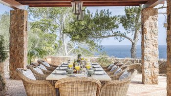 Jedes der fünf Schlafzimmer des Sa Punta verfügt über ein hervorragendes eigenes Bad und eine eigene Terrasse, und alle Wohnbereiche sind klimatisiert. Innerhalb der Gärten schließt sich ein 15 m langer beheizter Pool von einer atemberaubenden Bar an. Innerhalb der Villa umrahmen weiße Wände, Holzbalkendecken und weiche Fliesenböden die schicke Einrichtung im Landhausstil in gedämpften neutralen Farben. Zwischen den beiden liegen überdachte Terrassen, die bequem für das Leben im Freien eingerichtet sind.