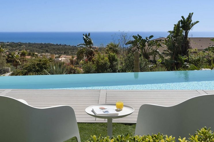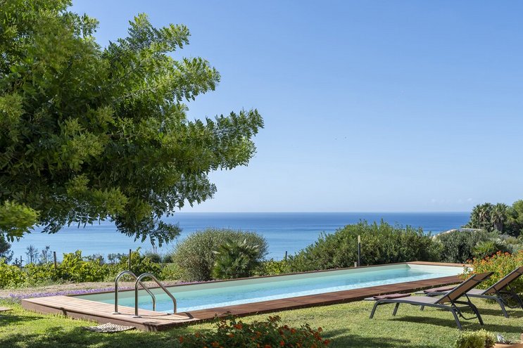 Eine gut ausgestattete moderne Villa mit einem atemberaubenden Poolbereich mit Blick auf das Meer. Dieser nach Süden ausgerichtete Villa ist sehr großzügig für eine kleinere Gruppe und liegt in der Nähe des Strandes und der historischen Stadt Sciacca.