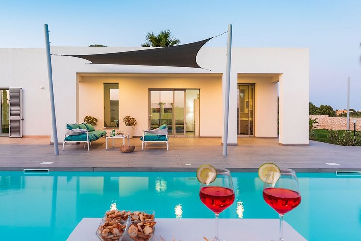 Nicht weit vom stimmungsvollen Siracusa entfernt, bietet diese herrliche, moderne Villa einen Pool direkt am Meer und direkten Zugang zum Meer.