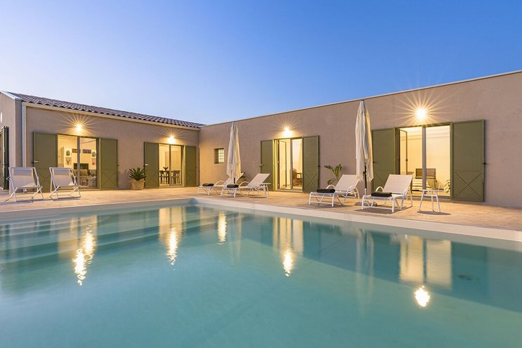 Die Villa Pomelia liegt in der Nähe der Strände von Marzamemi, Sizilien, und ist ein eleganter Rückzugsort mit drei Schlafzimmern für kleine Gruppen. Sie verfügt über einen privaten Pool und eine herrliche Küche und einen Essbereich im Freien.