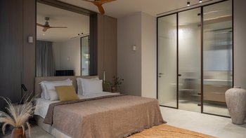Im Inneren sind die Hauptwohnbereiche des Bliss House so gestaltet, dass sie Verbundenheit und Entspannung fördern. Deren geräumige Familienzimmer ist ideal für Versammlungen, mit bequemen Sitzgelegenheiten und großen Fenstern, die einen atemberaubenden Blick auf das Meer bieten. Deren Gourmetküche der Villa ist komplett mit modernen Geräten ausgestattet, die die Zubereitung von Mahlzeiten zu einem Vergnügen machen. Es schließt sich nahtlos an den Essbereich an, wo die Gäste Familienmahlzeiten genießen können. Deren sechs ruhigen Hauptschlafzimmer der Villa bieten ruhige Rückzugsorte, jedes sorgfältig gestaltet, um eine erholsame Nachtruhe zu gewährleisten. Weichere Bettwäsche, viel Stauraum und ein eigenes Bad sorgen für Komfort und Bequemlichkeit. Im gut ausgestatteten Fitnessraum können Sie Ihr Fitnessprogramm beibehalten und in der Dampfsauna können Sie sich nach einem ereignisreichen Tag entspannen.