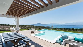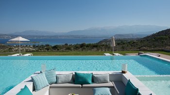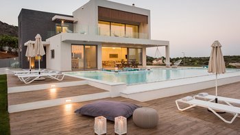 Die Villa Alayla befindet sich in einer atemberaubend ruhigen Lage in Chania und ist eine helle und moderne Unterkunft für Familien. Deren Innenräume sind modern und luftig, mit einem schön eingerichteten Wohn-/Essbereich und einer voll ausgestatteten Küche. Jedes der vier Schlafzimmer ist mit einem Doppelbett und eigenem Bad ausgestattet, während zwei mit einem brillanten begehbaren Kleiderschrank ausgestattet sind. Es gibt auch einen Arbeitsbereich im ersten Stock mit Blick auf die Zimmer darunter. Deren Villa verfügt über geräumige Wohnbereiche im Freien, darunter einen großen Garten, in dem die Kleinen spielen können. Es gibt auch einen schönen Infinity-Pool, einen sonnenverwöhnten Wohnbereich und einen schattigen Esstisch im Freien.
