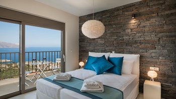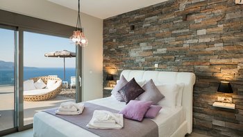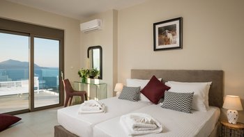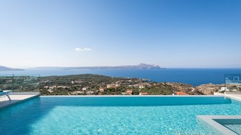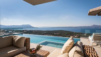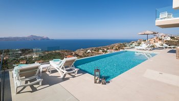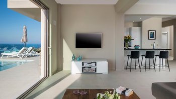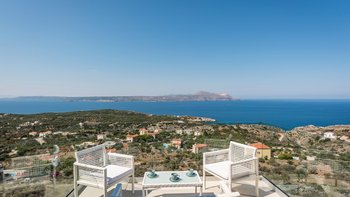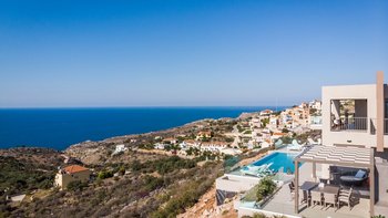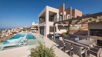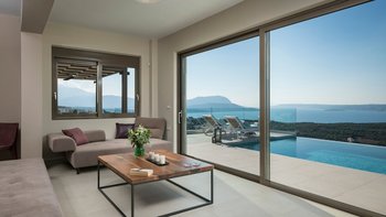 Eine elegante, moderne Villa mit Panoramablick auf das Meer und die Berge. Dessen Villa Cala bietet Privatsphäre, ein stilvolles Interieur und ein nahtloses Innen- und Außenleben; nur wenige Minuten von Kretas charmantesten Dörfern und Stränden entfernt.