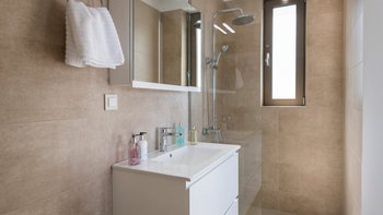 Die Villa Cala ist ein wunderschön gestalteter, moderner Rückzugsort in einer ruhigen Gegend etwas außerhalb des charmanten Dorfes Kokkino Chorio, mit herrlichem Blick über die Bucht und die Berge. Dessen Villa ist durchdacht auf zwei Ebenen angelegt und verfügt über geräumige Innenräume, große Glastüren und beruhigende, neutrale Töne.