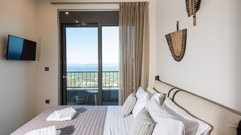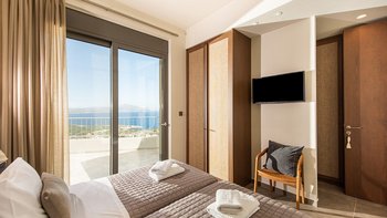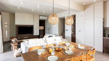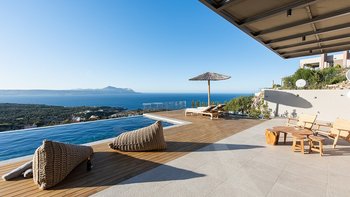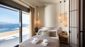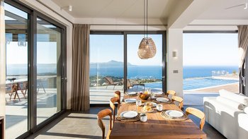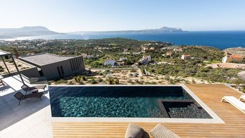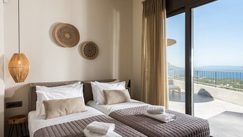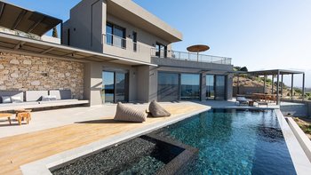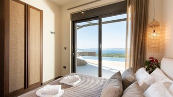Villa Kanai ist eine elegante und stilvolle Villa auf einem Hügel in der Nähe von Chania. Deren Innenräume sind geräumig und elegant, in einem modernen und attraktiven Stil eingerichtet. Deren Erdgeschoss verfügt über einen geräumigen Wohn-/Ess- und Küchenbereich, der dank der schönen raumhohen Fenster von Tageslicht durchflutet wird. Auf dieser Etage befindet sich auch ein Schlafzimmer mit Doppelbett, komplett mit einem modernen Duschbad en suite. Im Obergeschoss finden Sie zwei weitere Schlafzimmer mit jeweils eigenem Bad. Deren Hauptschlafzimmer hat auch Zugang zu einem privaten Balkon.