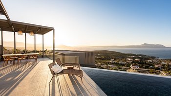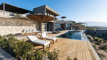 Die auf einem malerischen kretischen Hügel gelegene Villa Kanai ist eine elegante, Boho-Chic-Unterkunft für einen traumhaften Aufenthalt in der Nähe von Chania.