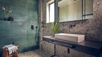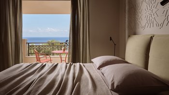 Beruhigende Grautöne beruhigen die Seele in dieser modernen 6-Personen-Villa in der Nähe von Zakynthos Stadt.