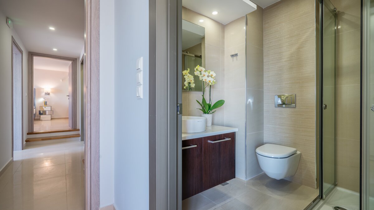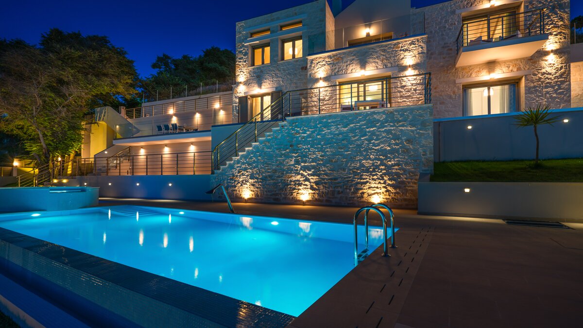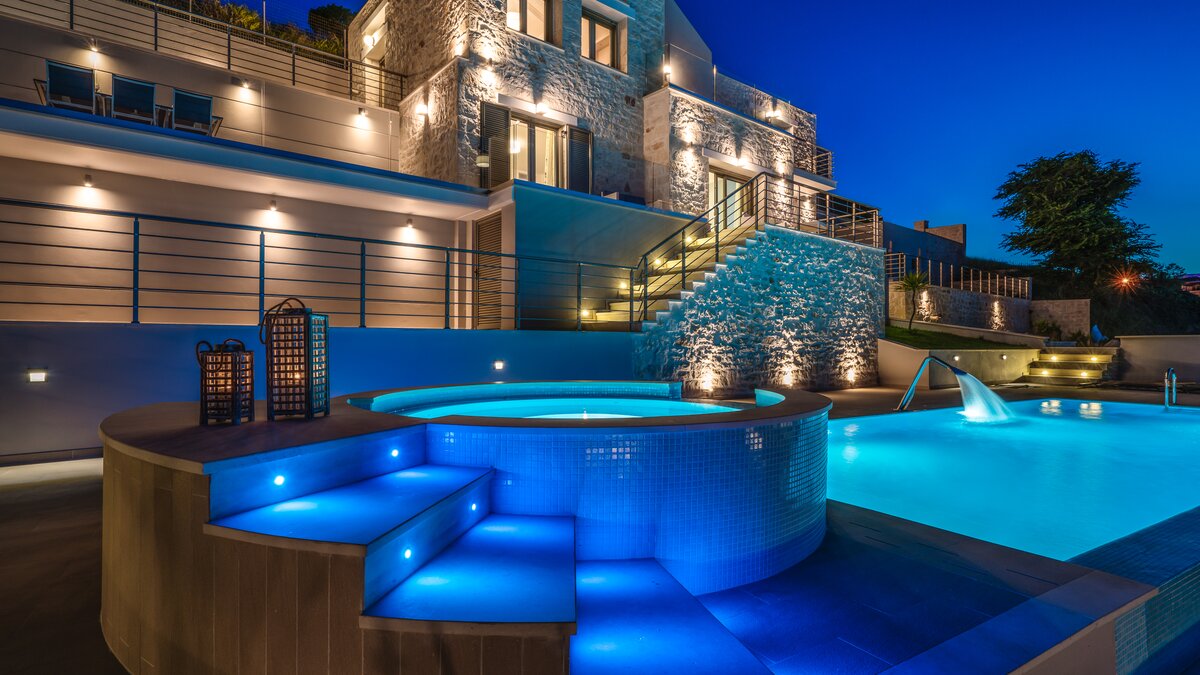 Gönnen Sie sich völlige Entspannung in dieser schönen Strandvilla in Tragaki, die sich an einem ruhigeren goldenen Abschnitt des Ampula Beach befindet. Deren wunderschöne Steinfassade zieht sofort die Blicke auf sich; im Kontrast zu dem tiefen, satten Blau der Ionischen Meereslandschaft dahinter ist diese Villa ein echter Hingucker. Sie sind nur fünf Minuten Fahrt von den Geschäften und dem Supermarkt und dem nahe gelegenen Tsilivi entfernt, aber hier dreht sich alles um das herrliche Gefühl von Frieden und Ruhe. Der Infinity-Pool am Meer liegt nur wenige Schritte vom Sand entfernt und bietet einen sensationellen Blick auf die Peloponnes-Küste und die Insel Kefalonia und. Dies ist der Ort zum Entspannen – es gibt Liegestühle und schattige Plätze für wirklich faule Tage sowie einen Kinderspielbereich, einen Jacuzzi und eine Bar für die besten Aperitifs zum Sonnenuntergang. Denen Villa im Inneren ist eine stilvolle Kombination aus modernem Design und traditioneller Architektur, mit gedämpften, aber neutralen Farbtönen, die dies zu einem eleganten Ort machen, in den man sich entfliehen kann. Der Eingang der Villa befindet sich im ersten Stock und führt in eine große offene Lounge mit einem Essbereich, einem gemütlichen Wohnzimmer und einer voll ausgestatteten Küche. Für die heißen und feuchten griechischen Sommer gibt es einen weiteren großen Esstisch auf der Terrasse am Meer. Es gibt vier geräumige Schlafzimmer in der Hauptvilla – drei davon befinden sich im Erdgeschoss. Jedes verfügt über ein eigenes Bad mit Dusche und Zugang zu einer separaten Veranda mit herrlichem Blick auf das Meer. Neben der Villa befindet sich ein eigenständiges Studio mit einem fünften Schlafzimmer mit Doppelbett, einem eigenen Bad mit Dusche und einer kleinen Küchenzeile.