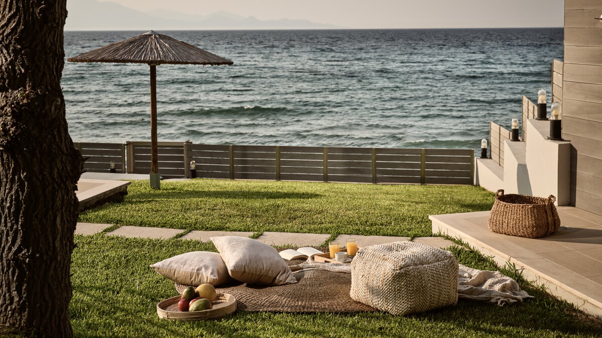 Es dreht sich alles um die Entspannung und den ungestörten Blick auf das Meer in dieser wunderschönen Villa am Strand auf der Insel Zakynthos.