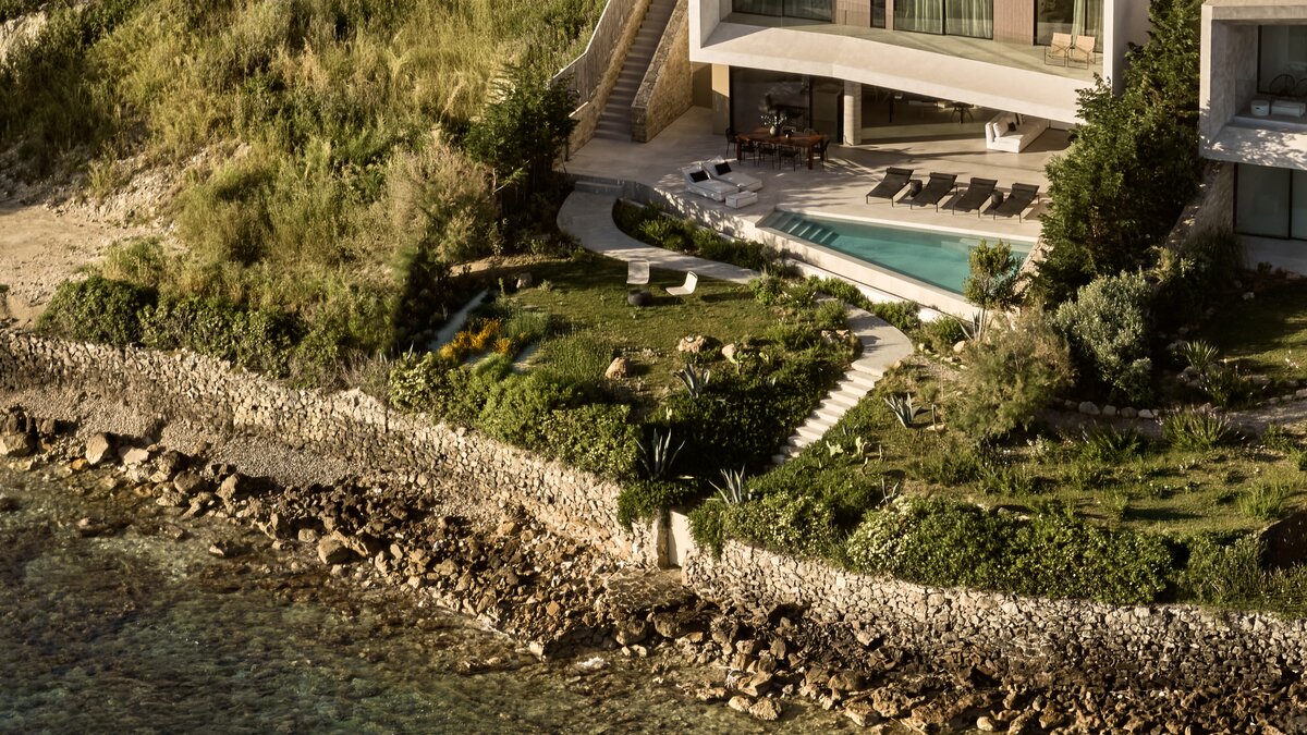 An der ruhigen Küste in der Nähe von Akrotiri gelegen, ist die Villa Aetheria eine moderne Oase, in der schlankes Design auf das endlose Blaue des Ionischen Meeres trifft. Auf 210 m² bietet dieses elegante Refugium eine ungestörte Aussicht und direkten Zugang zum Wasser, wodurch eine idyllische Umgebung für bis zu acht Personen geschaffen wird.
