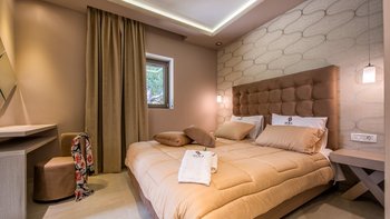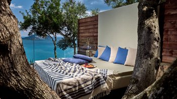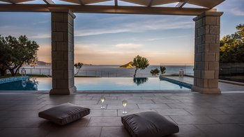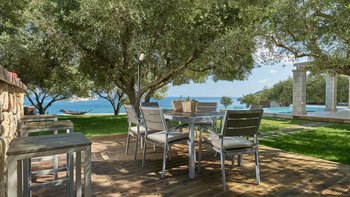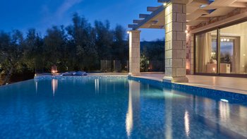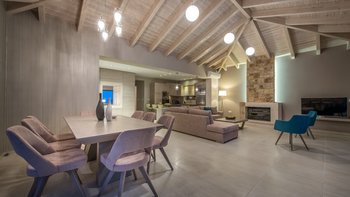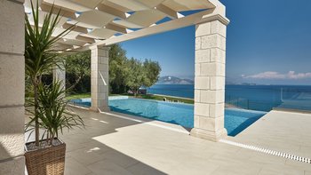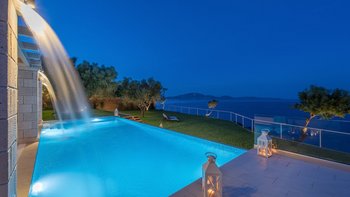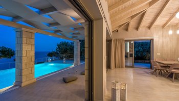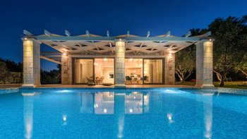 Diese elegante, aus Stein erbaute Poolvilla ist eine der neuesten Ergänzungen an der herrlichen Südwestküste von Zakynthos. Die Villa liegt privat auf einem Hügel oberhalb des Dorfes Limni Keri und bietet einen herrlichen Blick auf das Meer bis zur Schildkröteninsel von Marathonisi. Obwohl das Haus charmant modern ist, wurde es so gestaltet, dass es den klassischen zakynthischen Inselstil beibehalten hat. Es gibt ein unglaublich einladendes natürliches Design im Inneren – angefangen bei der großen, offenen Lounge mit riesigen Schiebetüren, die das Beste aus der idyllischen Meereskulisse machen. Abgesehen von den gelegentlichen Farbtupfern trägt die Villa einen wunderbar neutralen Stil im gesamten Erdgeschoss. Es gibt einen Esstisch, einen großen Steinkamin und einen modernen Küchenbereich mit Barhockern und allem notwendigen Komfort. Denen gefliesten Bäder sind modern und jedes der drei Schlafzimmer wurde einfach gestaltet, mit einem großen Doppelbett als herausragendes Herzstück. Zwei Schlafzimmer bieten auch den zusätzlichen Genuss eines eigenen Bades. Treten Sie nach draußen und es gibt einen wunderbar angelegten Garten, um Sie zu begrüßen. Freuen Sie sich auf Hängematten, Liegestühle, sonnendurchflutete Poolterrassen und einen eingebauten Grill – und einen atemberaubenden Pool, von dem Sie einige der fantastischsten Ausblicke auf das Ionische Meer genießen können. Wenn Sie Lust haben, in den Tag zu gehen, ist das Limni Keri Beach nur fünf Minuten von der Villa entfernt, oder es ist eine 13 km lange Fahrt zum wunderschönen goldenen Sandstrand von Kalamaki Beach.