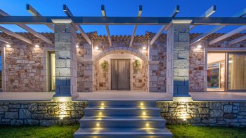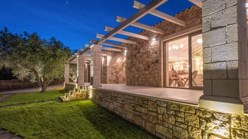 Dieses idyllische Steinhaus liegt versteckt auf einem Hügel und verfügt über drei Schlafzimmer, eine moderne Küche und einen Infinity-Pool mit herrlichem Meerblick.