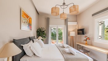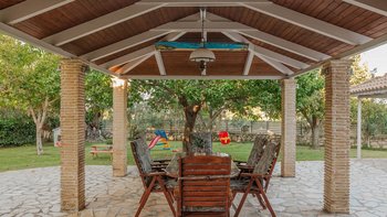 Es gibt nicht viel mehr als den Luxus eines kleinen Sandstrandes direkt vor der Haustür. Dieser schöne Privatvilla in der Nähe des Dorfes Lithakia ist ein absoluter Genuss – gehen Sie über den kleinen Privatweg am Ende des Gartens und schlagen Sie einfach auf den weichen Sand auf, der die Aussicht auf Ihre Villa umgibt. Der Außenbereich der Villa Raphaela ist unglaublich großzügig. Es gibt große Rasengärten für Spiele und einen großzügigen privaten Pool mit Liegestühlen und Brollies auf der gepflasterten Terrasse rundherum. Ein schattiger Sitzbereich mit Blick auf den herrlichen Meerblick ist ein fantastischer Ort für eine faule Siesta oder Entspannung vor oder nach dem Abendessen – und es gibt einen überdachten Esstisch mit einem Grill und einem Pizzaofen im Freien, so dass Sie wirklich in die Stadt gehen können, um eine Villa im Freien zu essen.