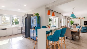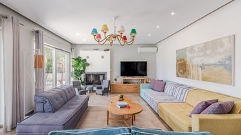 Diese farbenfrohe, moderne und stilvolle zweistöckige Villa bietet Platz für 8 Personen und verfügt über einen eigenen Weg zu einem schönen Sandstrand.