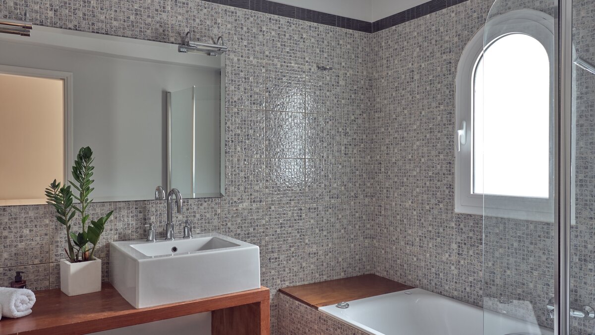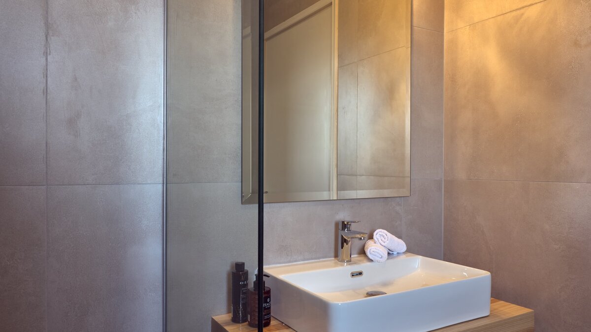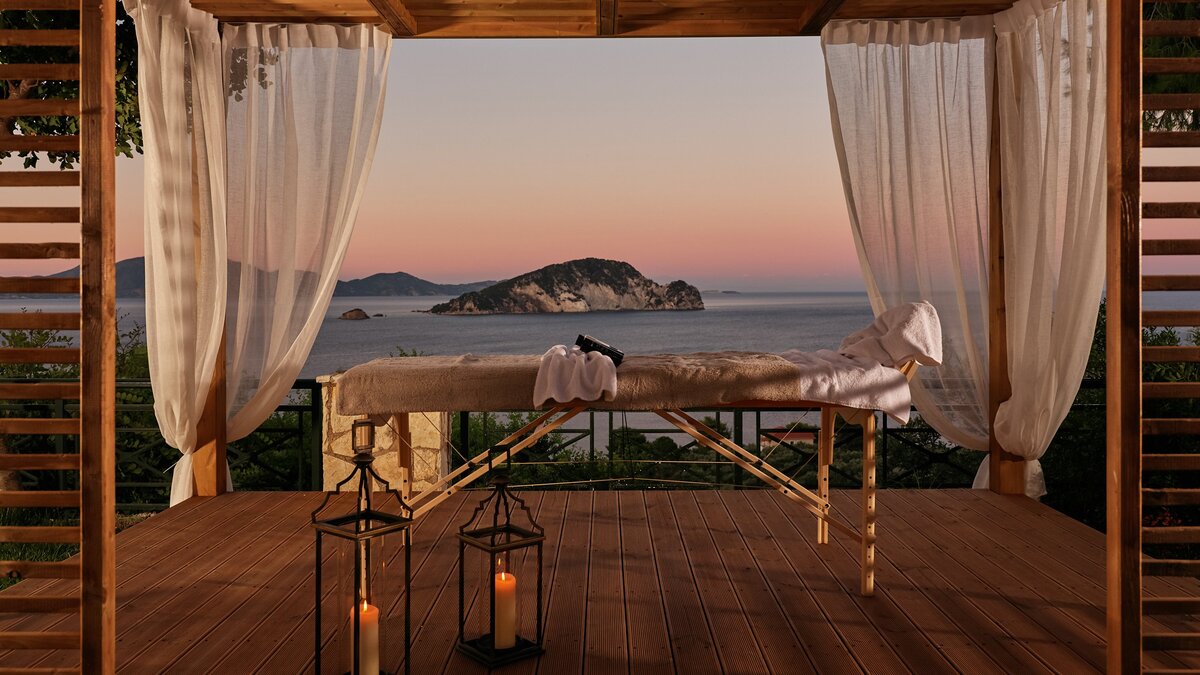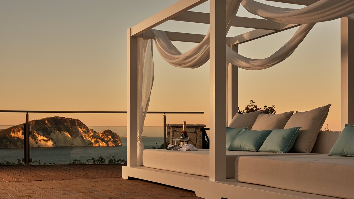 Ein stilvolles Interieur passt zu der hervorragenden Aussicht dieses modernen Inselurlaubs auf Zakynthos.