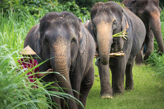 Das Unternehmen Elephant Hills hat ein grosses Herz für die grauen Riesen. Eine sanfte touristische Nutzung sichert ehemaligen Arbeitselefanten und deren Nachkommen ein würdevolles Dasein in einer tiergerechten Umgebung. Im Elephant Hills Camp am Rand des Khao-Sok-Nationalparks sind die Bedingungen dafür ideal: Hier geniessen die Elefanten genügend Auslauf im eingezäunten Naturgelände, und die Einheimischen haben dank Jobs und einem Einkommen eine Perspektive. Das Revier erweist sich als perfekter Ort für Aktivitäten, bei denen Gäste für den Tier- und Naturschutz sensibilisiert werden. Dazu kommt ein weiterer positiver Effekt: Die Anwesenheit der Besucherinnen und Besucher beugt Raubbau und illegalen Eingriffen im Nationalpark vor.