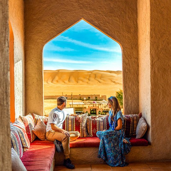 Die Sonne strahlt mit dem Gold um die Wette. Luxus und reiches Leben, mondän bei Tag, romantisch bei Nacht. Das immerwährende Märchen einer auf Hochglanz polierten Schatzkammer arabischer Kultur. Megatower und Moschee. Kamel und Rolls Royce. Weihrauchmarkt, Goldsouk, der Palast der Königin von Saba, das »Atlantis der Wüste« und 15.000 Quadratkilometer roter, gelber und weisser Sand, von dem Sie so schnell nicht aufhören werden, zu erzählen.