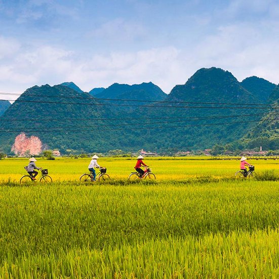 Kleine Hotels mit Atmosphäre, immer perfekt gelegen – mal in der üppigen Natur, mal im Stadtzentrum. Zwei Metropolen, in denen sich Nostalgie und Wirtschaftswunder begegnen, dazwischen weite grüne Reisfelder, schwimmende Märkte, dampfende Garküchen, eine Nacht auf einer Dschunke. Und Erlebnisse, die in kleiner Gruppe einfach mehr Spaß machen: eine Radtour ins Kräuterdorf, ein Kochkurs oder ein Besuch beim Wasserpuppenspieler.