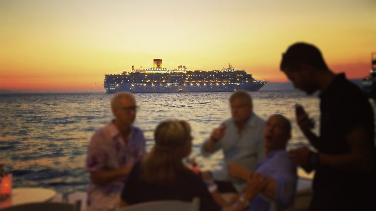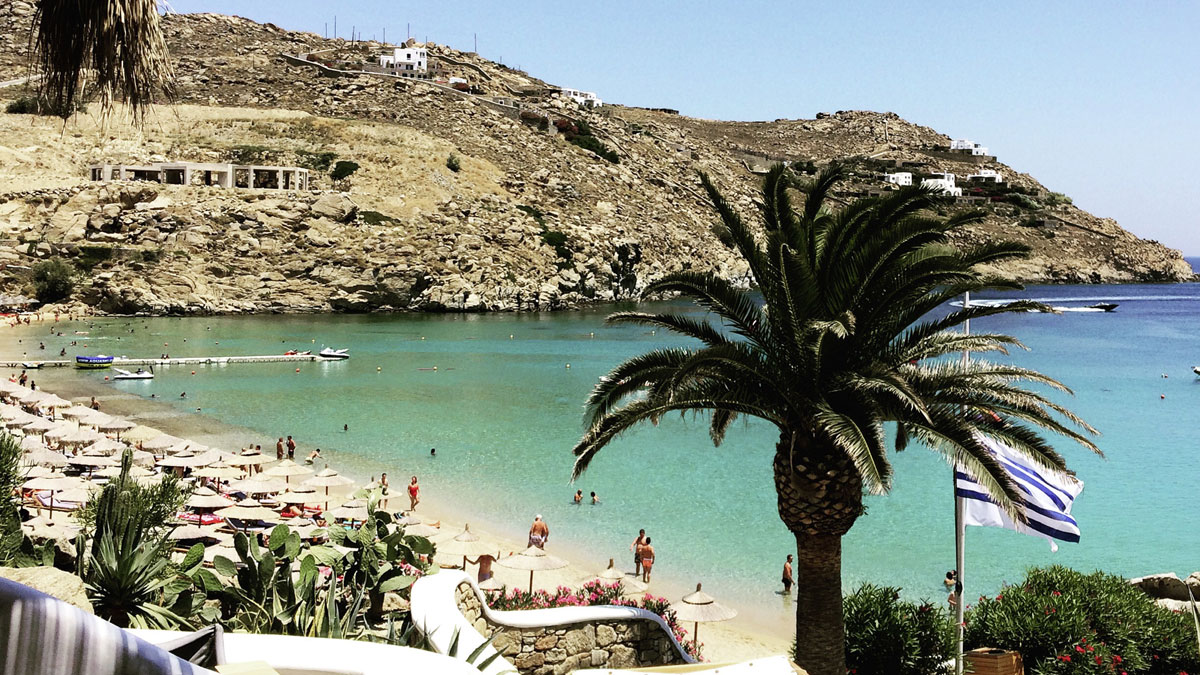 Mykonos war eine der ersten griechischen Inseln, die in den 60er Jahren den Tourismus als Einnahmequelle entdeckte. Zuerst kamen die Hippies, dann Stars wie Jackie Onassis, gefolgt von der Gay-Community, den Kreuzfahrttouristen und schliesslich dem Partyvolk. Heute bietet Mykonos einen Mix aus alldem: Wer Hummer für 100 Euro knacken möchte, findet ihn genauso wie derjenige, der für ein Bier nicht mehr als zwei Euro zahlen will. Wers gerne ruhig mag, legt sich an einen einsamen Strand, und wer feiern will, muss auch nicht weit suchen. Und was ist mit der Krise Griechenlands? Als Tourist bekommt man nichts mit: Man zahlt mit Kreditkarte, bezieht Geld am Bankomaten, die Einheimischen sind gut gelaunt und sehr gastfreundlich. Hier die besten fünf Orte für einen Drink mit Aussicht.