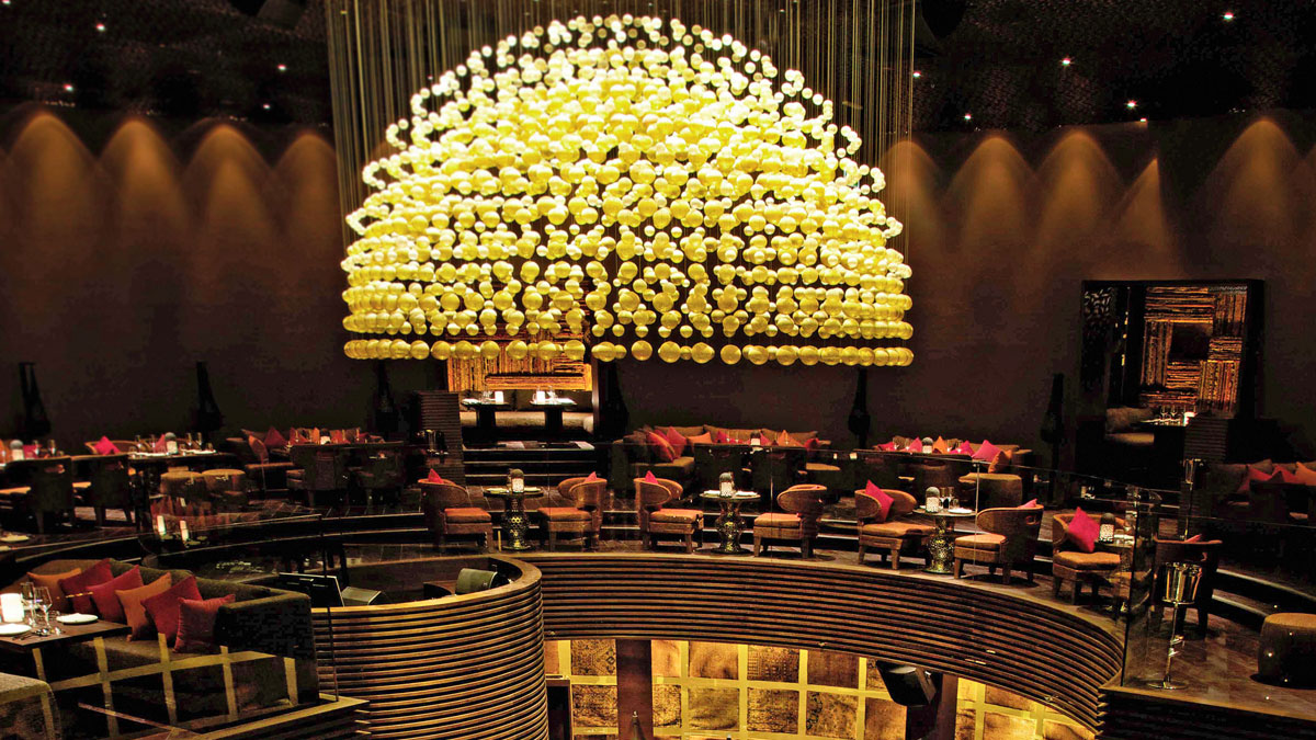 Das Q’bara macht aus einer auserlesenen Mahlzeit eine Unterhaltung. Das majestätische Restaurant mit arabeskem Dekor in Wafi-City interpretiert traditionelle nahöstliche Speisen kreativ. Diese Kreativität zeigt sich auch im Namen Q’bara, der rückwärts gelesen phonetisch das Wort «Arabic» wiedergibt. Eine faszinierende Lichtshow wird auf eine Wand mit Holzschnitzereien projiziert. Beginnen Sie mit Margaritas aus eingemachter Zitrone und teilen Sie sich dann Hummer-Kibbeh mit Avocado-Labneh-Dip und Hähnchen-Musakhan auf Fladenbrot mit Butter. Und zum Dessert eine Kombination aus Baumnuss-Baklava, dunkler Schokolade und Kamel-Milch-Glacé.