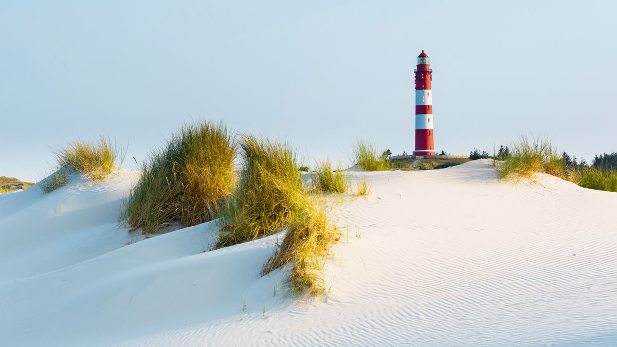 Weich, weiss und weit liegt er da, wie ein gewirktes Seidentuch. Mit 15 Kilometern Länge und fast zwei Kilometern Breite einer der grössten Strände Europas. Kniepsand heisst diese Naturschönheit mitten im Wattenmeer. Einen prächtigen Überblick auf die Insel und die Halligwelt ermöglicht der Amrumer Leuchtturm: Nach 300 Treppenstufen offenbart sich ein Panorama, das seinesgleichen sucht.