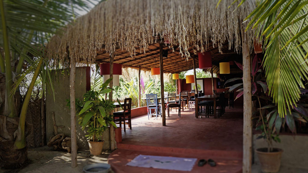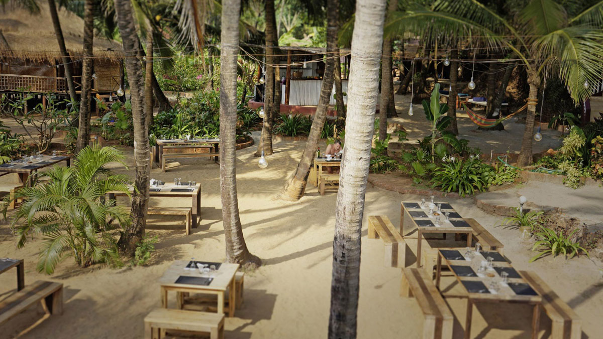Sehr versteckt hinter hochwachsenden Pflanzen, geschützt unter einem Palmendach findet sich dieses kleine, zum gleichnamigen Hotel gehörende Restaurant. Unbedingt den Linsensalat, ein Knoblauch-Naan und den frisch gepressten Mango-Saft probieren. Erwischt man den richtigen Tisch, wird man mit einer phänomenalen Aussicht über den Ashvem Beach belohnt. Wer lieber liegend essen möchte, setzt sich in den Lounge-Bereich neben dem Restaurant. Die grossen Kissen und die Chill-Out Musik laden zum Verweilen ein.