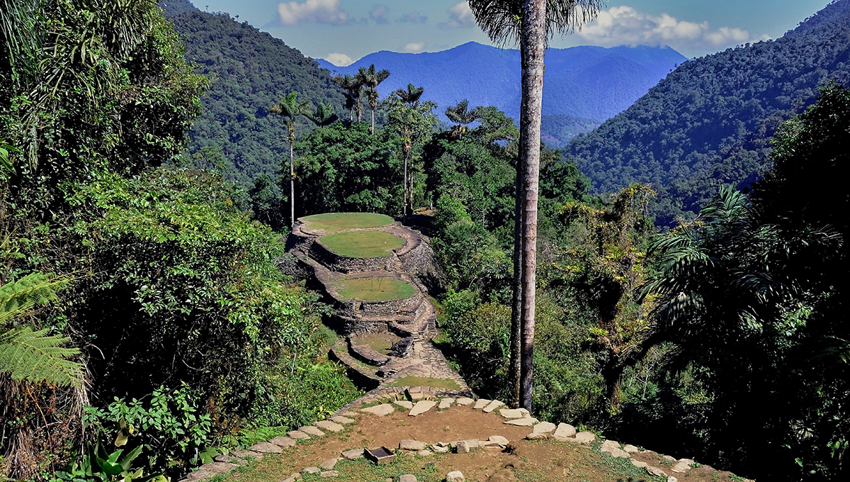Tief verborgen im Dschungel des kolumbianischen Küstengebirges Sierra Nevada de Santa Marta liegt die legendäre Ciudad Perdida. Nur durch eine mehrtägige Trekkingtour können Abenteuerlustige die «verlorene Stadt» erreichen. Der Pfad schlängelt sich durch tropische Vegetation, vorbei an Bananenplantagen und klaren Flüssen. Am Ende gilt es rund 1200 Treppenstufen zu überwinden, um den Ausblick über die markanten ovalen Terrassen der verlorenen Stadt zu geniessen.