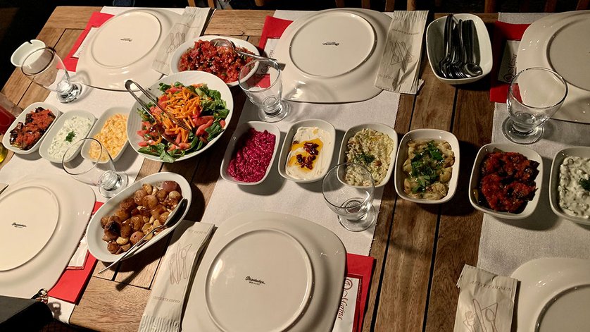 Die Kulinarik ist nicht nur innerhalb von türkischen Familien sehr wichtig, sondern auch in der Gastronomie und Hotellerie. Traditionellerweise werden viele verschiedene Gerichte serviert und das Essen wird miteinander geteilt. Da-bei reicht die Auswahl von Mezzeplatten, bestückt mit Cacık, dem türkischen Pendant zum griechischen Tzatziki, oder Muhammara, einem Dip aus gerösteten Paprika und Walnüssen, bis hin zu Köften aus Hackfleisch, Lahmacun, der türkischen Variante der Pizza, oder Çipura buğulama, Dorade aus dem Ofen – um nur eine kleine Auswahl der schmackhaften Gerichte zu nennen. Zu den Speisen wird kühler Wein oder Raki getrunken, und als Dessert runden süsse Gebäcke wie Baklava oder Lokum, würfelartige Häppchen aus Honig, sowie starker türkischer Kaffee die Mahlzeit ab. Besonders gut schmecken lässt sich die türkische Küche in einem der vielen Restaurants, welche oftmals über eine Terrasse oder eine Rooftop-Bar verfügen.