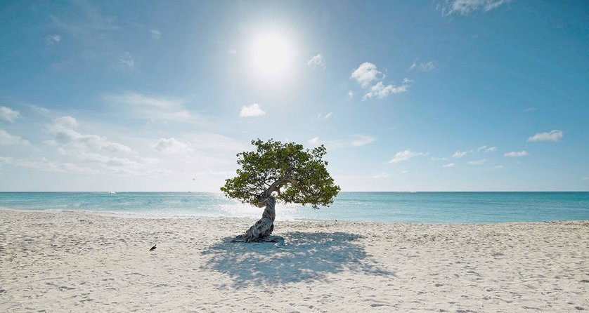Aruba ist bunt, ein wenig amerikanisch geprägt und bietet ein multikulturelles Flair. Das bemerke ich schon kurz nach meiner Ankunft bei den vielen Sprachen, die ich zu hören bekomme. Niederländisch, «Papiamento» (ein Mix aus Portugiesisch, Afrikanisch, Spanisch, Niederländisch und Englisch) und auch Englisch und Spanisch sind auf der kleinen Insel weit verbreitet. Die Vegetation differenziert sich von vielen anderen Karibikinseln. Anstelle von Palmen wachsen hier die unverwechselbaren Divi-Divi-Bäume, die der Insel einen individuellen Look geben.