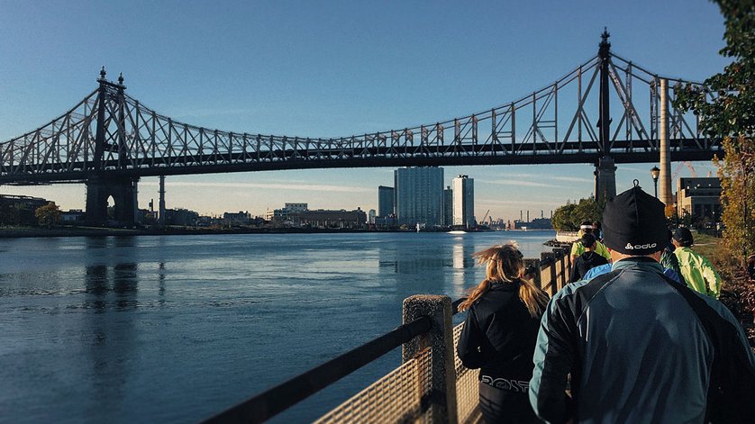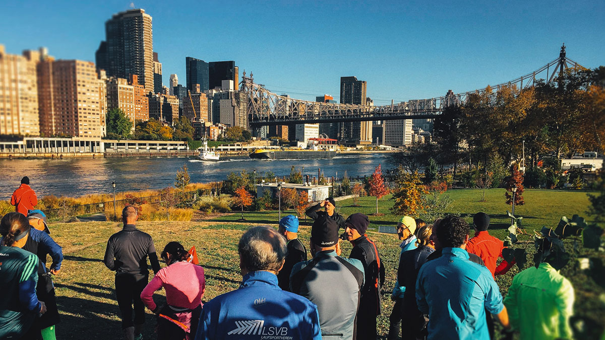 In den nächsten Tagen fühle ich mich wie ein Schwamm, sauge alles auf, was New York mir gibt und geniesse jede Minute. Obwohl ich alleine angereist bin, habe ich nun zu keinem Zeitpunkt das Gefühl, einsam zu sein. Die zwei Tage vor dem Marathon beginnen jeweils mit einem Trainingslauf mit Markus Ryffel’s, dem sogenannten «Footing», bei dem wir uns zusammen — in gemütlichem Jogging-Tempo — einen Teil der Marathonstrecke anschauen. Das Wetter ist herrlich, Vorfreude liegt in der Luft, und Businessleute und Strassenreiniger rufen einem anerkennend zu «Good Luck for the Marathon!». Auf dem neun Kilometer langen Trainingslauf einen Tag vor dem Marathon erzählt mir Dieter, 76 Jahre alt, dass dies sein 18. Marathon sei. Er rechne mit circa fünf Stunden. Ich hoffe insgeheim, dass ich das auch schaffe. Dieter lacht mich an und klopft mir auf die Schulter: «Das wird schon!».