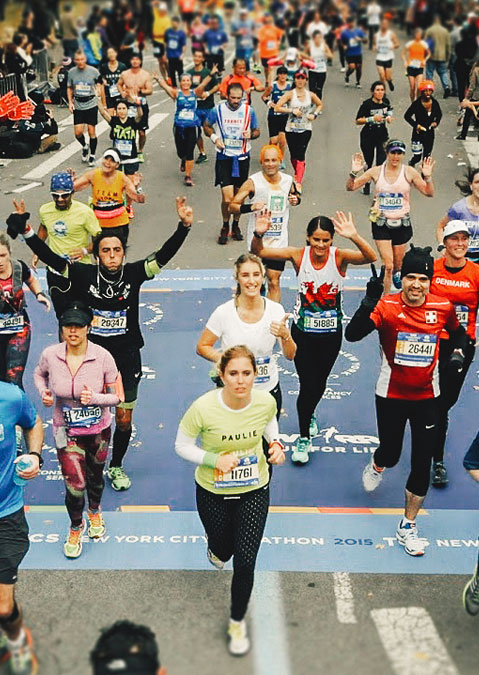 Am Abend vor dem Marathon, gesättigt von einer riesigen Portion Pasta, schaue ich mir im Bett auf Youtube noch den Motivationstalk einer erfolgreichen Marathonläuferin an. Sie sagt im Video: «Immer wenn ich denke, ich kann nicht mehr, dann stelle ich mir vor ich sei Beyoncé!» — lustig, denn Beyoncé ist noch nie einen Marathon gelaufen. Dafür wird uns morgen die Sängerin Alicia Keys begleiten. Mich und die 50 000 anderen Marathonläufer.