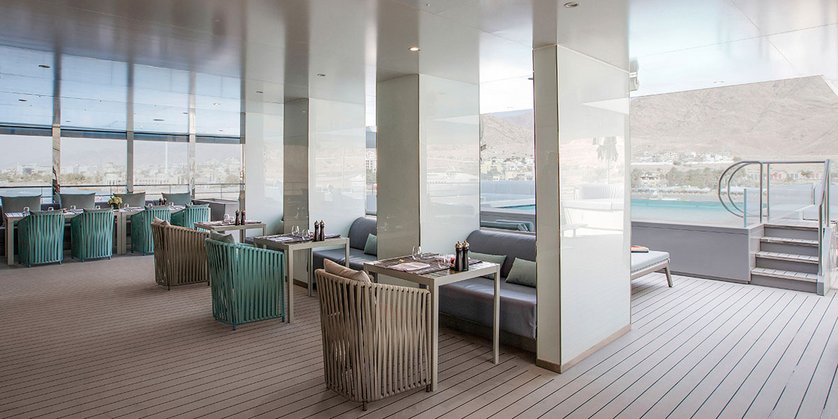 Der kleine Infinity Pool wird täglich gefüllt mit frischem Meerwasser (routen-/wett erabhängig) und sorgt für eine angenehme Erfrischung besonders während der heissen Sommertage. Lounges und Liegeflächen laden zum entspannten Verweilen an Deck ein, und an den Aussenbars werden kühle Drinks serviert. Die Badeplatt form am Heck ermöglicht den Sprung ins Meer; sie wird an geeigneten Reisetagen geöffnet und dient gleichzeitig als Zugang zum Tenderservice für Landgänge. Ob Sie nun eine gemütliche Lesestunde oder die beste Aussicht auf das Meer geniessen möchten, die Observation Lounge ist der geeignete Ort und die absolute Ruhezone der Yacht.