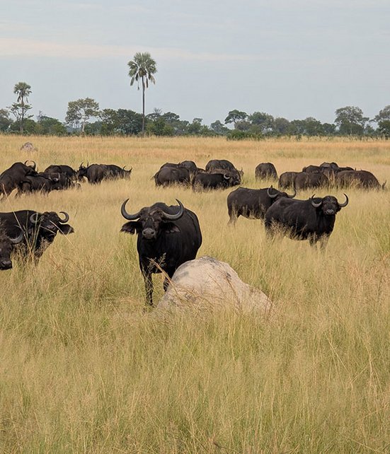 Das berühmte i-Tüpfelchen kam zum Schluss: Auf dem Weg ins hohe Gras schlenderte die ganze Familie keine fünf Meter an unserem Fahrzeug vorbei. Hühnerhaut pur! Am letzten Safaritag begegneten wir der Familie erneut. Verspielt tobten die Jungtiere, während die älteren Löwen in der Sonne ruhten. Ein letzter Elefant am Airstrip verabschiedete uns, bevor ich nach Victoria Falls zurückflog. Von dort ging es weiter nach Sambia. Auf einer Sunset Safari Cruise über den Sambesi-Fluss konnte ich Flusspferde, Krokodile und unzählige Vögel aus nächster Nähe bestaunen. Am bereits letzten Tag meiner Reise standen die berühmten Victoriafälle auf dem Programm. Der Anblick der Wassermassen, die sich donnernd in die Tiefe stürzen, erklärt den einheimischen Namen «Mosi-oa-Tunya» – donnernder Rauch – eindrücklich. Zum Abschluss durfte ich Breitmaulnashörner, denen ich mich in Begleitung von Rangern zu Fuß annäherte, aus nächster Nähe beim Fressen beobachten. Diese Reise war weit mehr als nur Safari – sie war ein Abenteuer für alle Sinne. Elefanten im Abendlicht, Löwenjunge beim Spielen, die donnernden Victoriafälle und die Herzlichkeit der Menschen haben sich tief eingebrannt. Es war sicher nicht das letzte Mal, dass mich das südliche Afrika in seinen Bann gezogen hat.