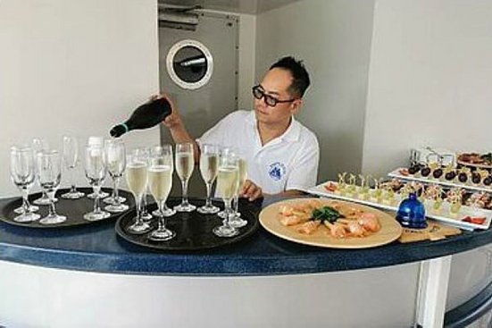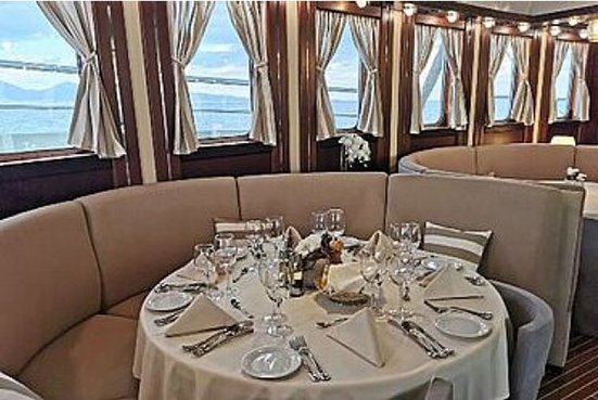 Im Restaurant beeindruckten kreative Geschmackserlebnisse und lokale wieinternationale Spezialitäten. Handverlesene Weine (immer eine Auswahl aus passendenRot-, Weiss- und Roséweinen) wurden auch hier in einer Balance zwischen lokalen undinternationalen Produkten empfohlen. Das Herz und die Seele des Schiff es wareneindeutig die beiden Gastgeber Robert und Claudia, die aufgrund ihrer mehrjährigen Erfahrung auf See, gepaart mit einer soliden Ausbildung in Gastronomie und Touristik,eine perfekte Symbiose bilden.