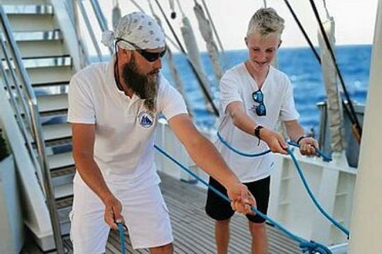 Auf dem Weg zurück nach Athen konnten Interessierte einmal unter Aufsicht des Kapitäns das Segelschiff steuern oder unter Anleitung des Skippers Alexej verschiedene Knotentechniken lernen.
