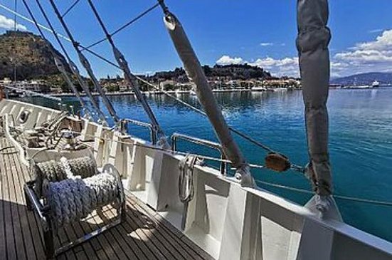 Als ehemaliges Crew-Mitglied an Bord von Kreuzfahrtschiffen hatte unsere Produktmanagerin schon so manche griechische Insel besucht und gesehen. Umso neugieriger machte sie sich auf die Reise mit der «Running on Waves», bei der sie die griechischen Häfen Nafplio, Monemvasia und Milos besuchen würde. An einem heissen Tag im Juni begrüsste die Crew des Dreimasters «Running on Waves» die 18 Reisespezialisten aus Deutschland und der Schweiz mit einem erfrischenden Apéro in einer entspannten Atmosphäre. Trotz einiger Reisestrapazen an einem etwas chaotischenReisetag waren die Gäste nun endlich angekommen und gut aufgehoben. Nach dem erstenKennenlernen der Mitreisenden war es Zeit, die Kabinen zu beziehen und sich ein wenigzu erfrischen.