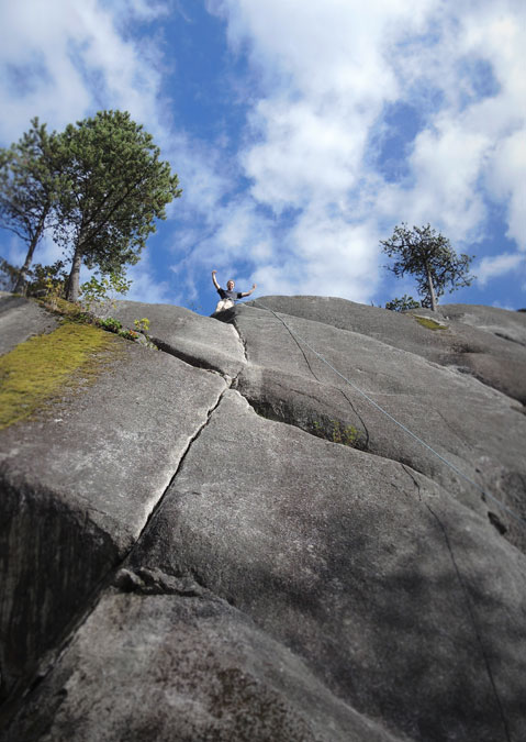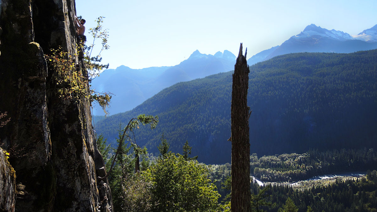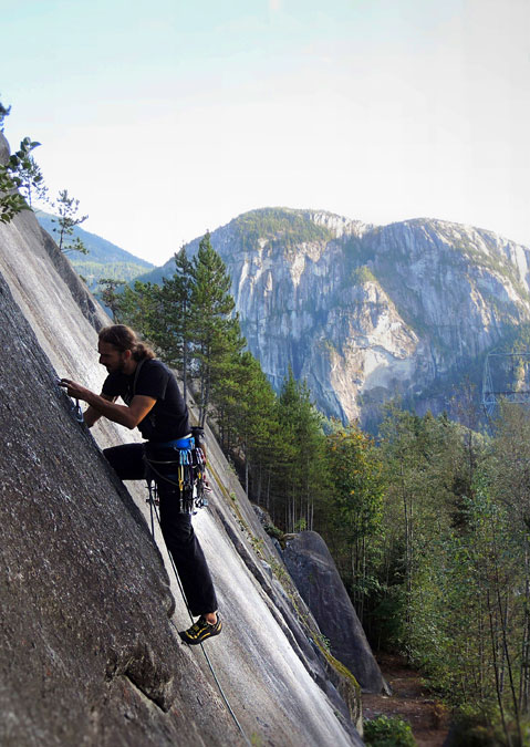 Während in Vancouver noch viele Kleinwagen unterwegs sind, nimmt die Anzahl grosser Geländewagen auf der Strasse rapide zu, je mehr man sich vom Stadtzentrum entfernt. Nur 30 Kilometer nördlich von Vancouver — und somit komplett im Hoheitsgebiet der Offroader — liegt der ehemalige Minenort Squamish. Heute ist das Städtchen am Howe Sound vor allem ein Hotspot für Wanderer und Kletterer. Mit rund 1500 Routen unterschiedlicher Schwierigkeit in exzellentem Granit steht Squamish bei Kletterern auf der ganzen Welt hoch oben auf der Liste der Wunschdestinationen. Von kurzen Boulderproblemen bis hin zum 500 Meter hohen Bollwerk des Stawamus Chief bietet die Gegend etwas für jeden Geschmack. Mitteleuropäische Sportkletterer seien jedoch an dieser Stelle gewarnt: Bohrhaken zur Zwischensicherung finden sich in den wenigsten Routen in Squamish. Der Grossteil der Routen wird traditionell abgesichert, mit mobilen Sicherungen, die vom Kletternden selbst gelegt und wieder aus der Wand entfernt werden.