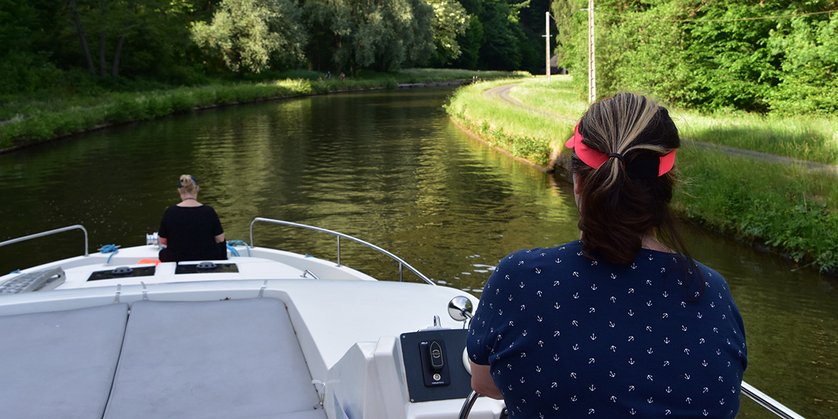 Das Steuern von Hausbooten findet mit einer zeitlichen Verzögerung statt – daran muss man sich zuerst einmal gewöhnen. Bei der Einweisung lernen Sie, worauf Sie beim An- und Ablegen achten müssen. Die Fahrtrichtung ist immer rechts. Ohne Gegenverkehr können Sie auch schön in der Mitte des Flusses oder Kanals fahren – vor Kurven sollten Sie die Geschwindigkeit immer zurücknehmen um bei Gegenverkehr oder unerwarteten Hindernissen gegensteuern zu können.