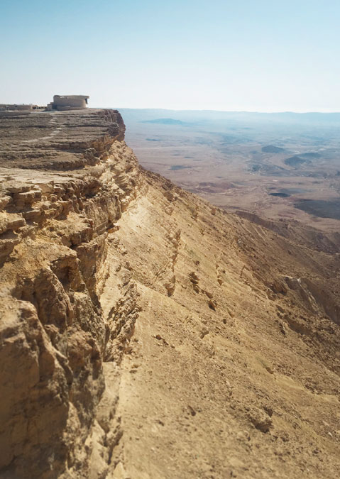 In der Negevwüste Israels liegt eine Naturschönheit neben der anderen. So sei hier auch der grösste Erosionskrater des Jordangrabens, der Machtesch Ramon, zu nennen. In seiner grössten Ausdehnung misst er fast 40 Kilometer. In die Weite und ebenso Tiefe des Kraters blicken wir auch, als wir am nördlichen Punkt Mitzpe Ramon stehen. Ausschau halten ist aber nicht genug. Unser Tourbus fährt uns ins Innere dieses einzigartigen Naturphänomens. Zwischen den riesigen Kalksteinkuppen wandernd, komme ich mir winzig vor. Weil im Sommer gerade Dürrezeit herrscht, ist es nur schwer vorstellbar, dass hier die Erosionen einmal im Jahr mit grossen Regengüssen komplett mit Wasser gefüllt werden. Bei einer kleinen Pause lässt warmer Schwarztee meinen Körper die unglaubliche Hitze vergessen – ein altes Beduinengeheimnis, um die 40 Grad der Negevwüste zu überstehen. Als wir aus dem Krater wieder rausklettern, empfängt uns ein Beduine zum Abendbrot und erzählt uns vom akzeptierten Zusammenleben der jüdischen Bevölkerung und den dort sesshaften arabischen Beduinenfamilien im Negevgebiet.