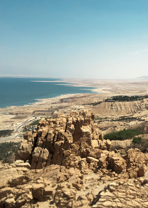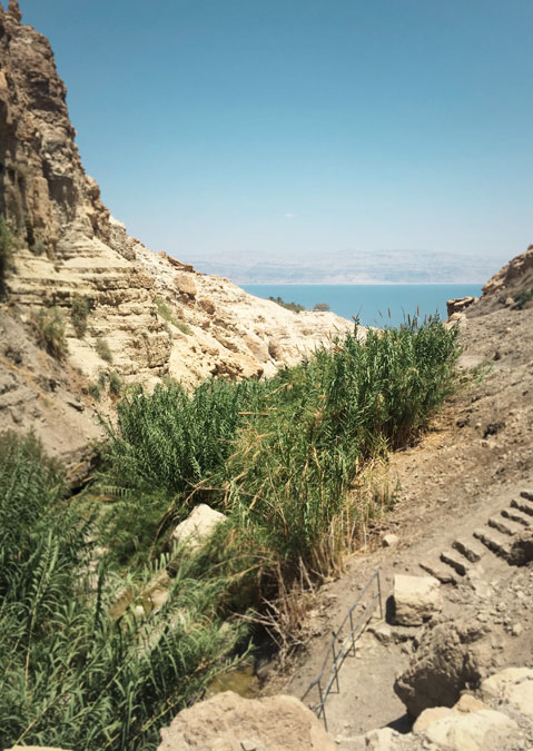 Nach einer zweistündigen Busfahrt von Tel Aviv erreichen wir, das 428 Meter unter dem Meeresspiegel liegende, En Gedi. Das Naturreservat liegt am Westufer des Toten Meeres. Wegen der tiefen Luftfeuchtigkeit und den extrem hohen Temperaturen rät uns unser Tourguide mindestens 1.5 Liter Wasser einzupacken. Die Hitze ist erdrückend, der Weg steil und meine Finger sind zu Elefantenhänden angeschwollen. Schon bald gewinnen wir an Höhe, das unsere Augen mit dem atemberaubenden Ausblick über das sandfarbene Gebirge bis hin zum nahegelegenen Toten Meer belohnt. Für eine spätere Abkühlung sorgen die kleinen «Quellen des Zickleins» — was die hebräische Übersetzung für En Gedi bedeutet. Mit leeren Wasserflaschen kehren wir zurück zum Tourbus, der uns weiter zum Strand am Toten Meer bringt.