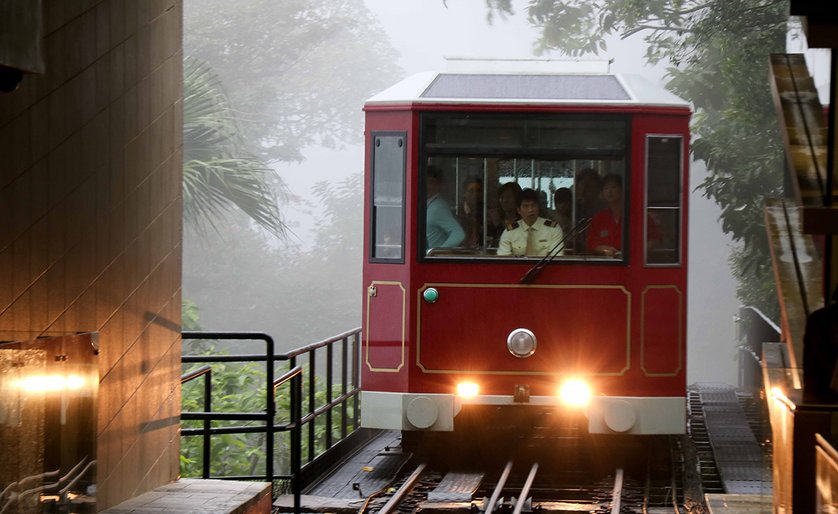 Zurück auf der Strasse, suchten wir erstmals vergebens nach einem leeren Taxi. Bei denjenigen Taxis, die bereits am Strassenrand standen, wurden wir von den Taxifahrern mit einer Handbewegung weggewinkt, die uns zu verstehen gab, dass wir sie nicht ansprechen sollen. Kurze Zeit später hielt dann aber doch noch ein Taxifahrer, der uns freudig signalisierte, dass wir bei ihm einsteigen durften. Die Fahrt an die Tramstelle des Victoria Peaks dauerte aufgrund des Verkehrs lange. Zwischendurch versuchten sowohl der Taxifahrer als auch ich eine kleine Konversation zu führen. Doch seine Englisch Kenntnisse waren hierfür – wie bei der Mehrheit der Einheimischen – nicht ausreichend und das Mandarin Chinesisch, das er behauptete sprechen zu können, verstand ich dann trotz meiner sehr guten Kenntnisse doch nicht.